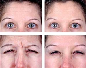O Botox é injetado para reduzir os efeitos das rugas da testa, entre as sobrancelhas e os famosos e indesejáveis pés-de-galinha. As aplicações são indolores e o paciente começa a sentir os efeitos num período de 48 horas a 15 dias após as injeções.